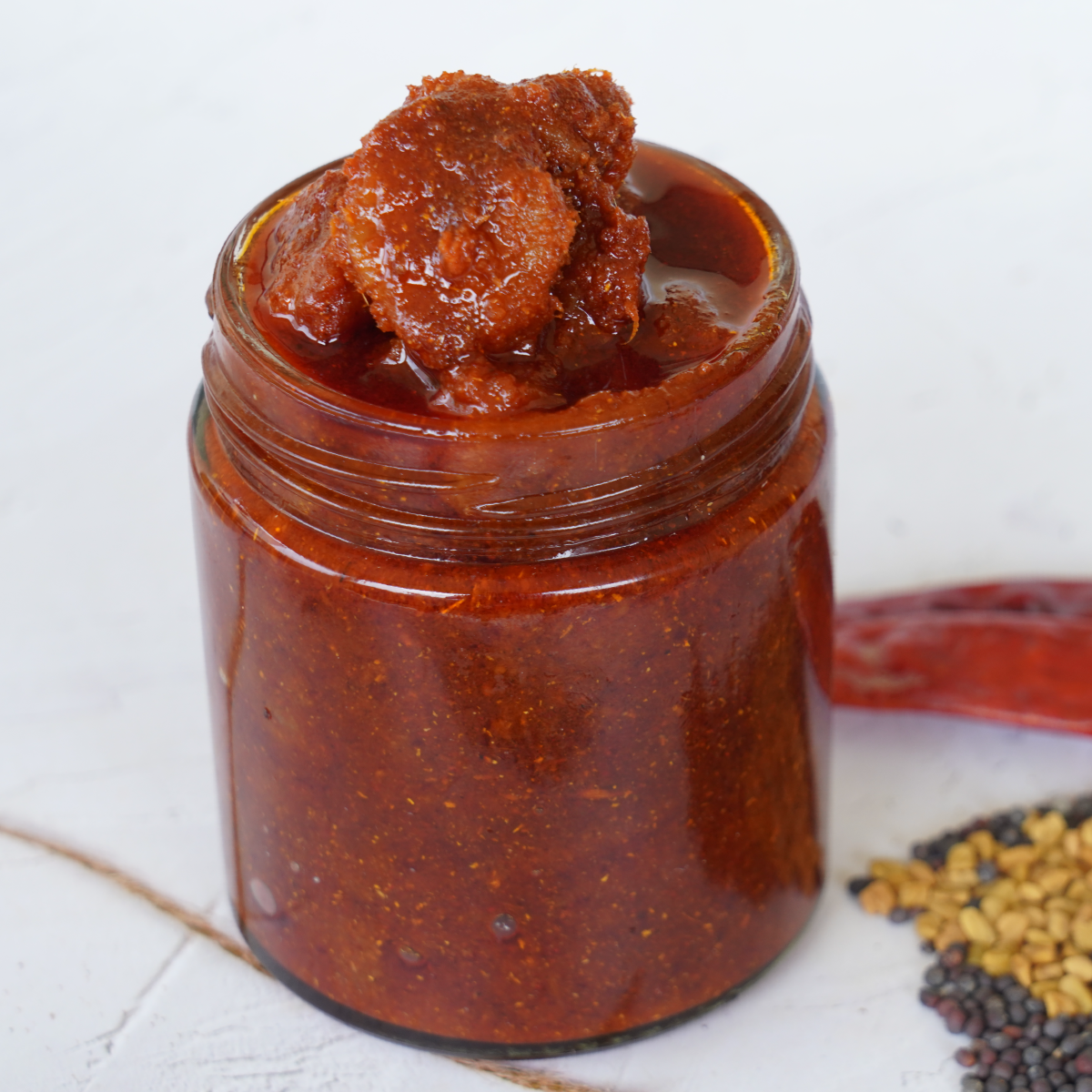 Baanali’s Royyalu Aavakaya is an Andhra seafood condiment that packs a delicious, lip-smacking and succulent Prawns, spiced up with flavoursome and roasted traditional spices. Bound to mesmerise the taste buds with its tangy and spicy taste, Royyalu Aavakaya is a delight and an absolute feast to relish.It is customarily prepared with a combination of Prawns, Oil, Spices, Ginger and Garlic.